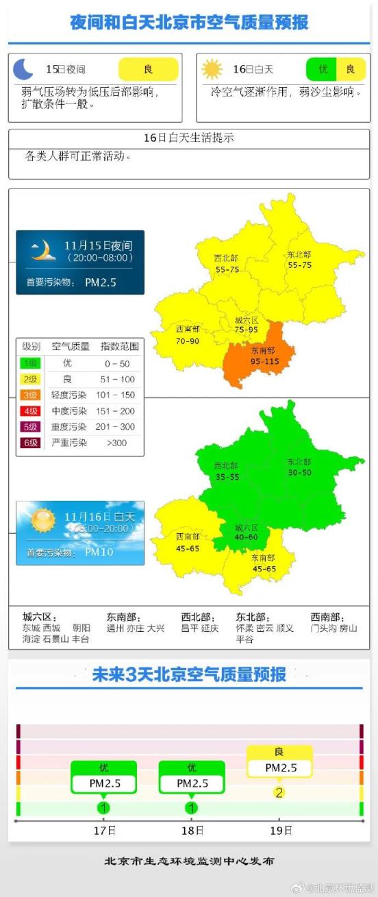 16日白昼,冷空气渐渐作用,可能有弱沙尘影响,纰谬稠浊物为PM10,指数40-60,1-2级,优-良。瞻望17日:1级;18日:1级;19日:2级。具体分区预告遵循见附表。