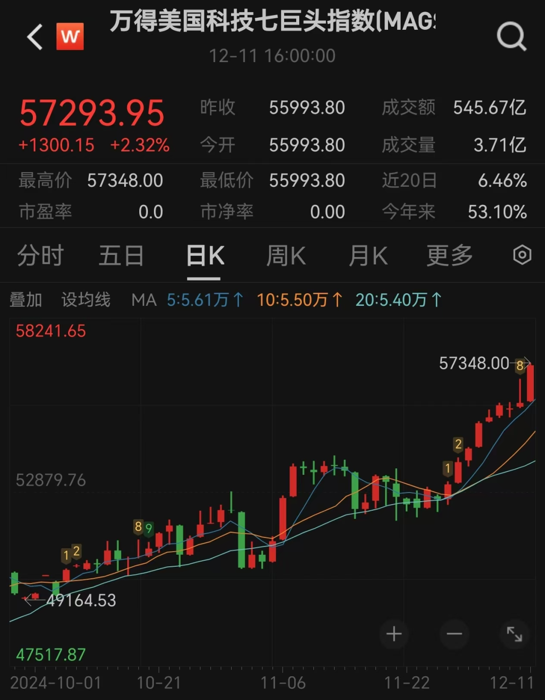 大型科技股普涨,万得好意思国科技七巨头指数高潮2.3%。