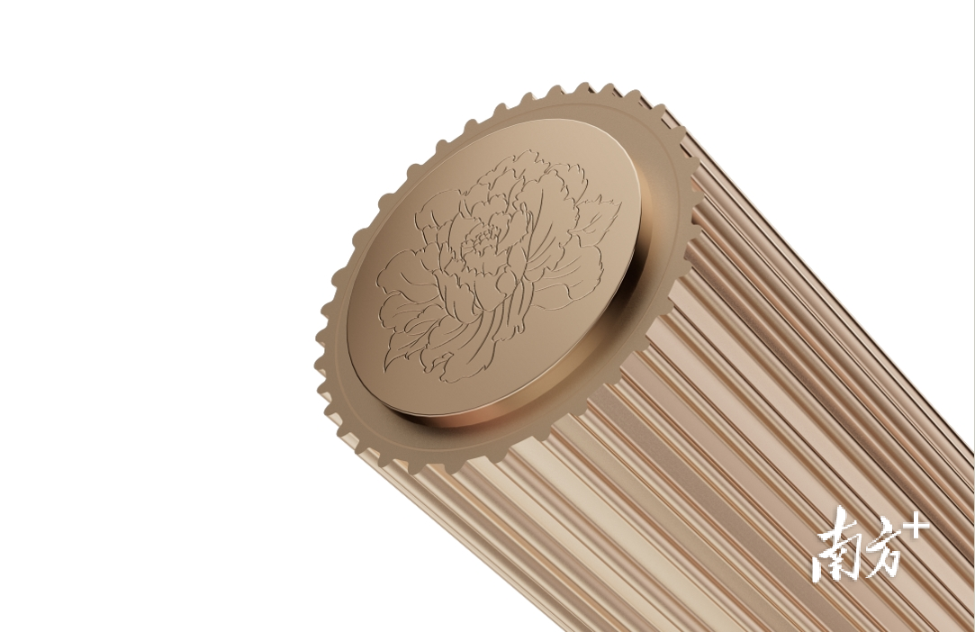 与会徽“齐心礼花”有始有终,火把在外不雅规划上将“盛开”这一要道词无间了下来。通过将平面会徽纵向拉伸,并作念出一定的旋转扭变,呈“火烛银花”盛开状。尖端焰口为“海潮”状会徽造型,横看火把以流线型金属为骨,呈现“礼花盛开”的动态好意思感;底部为牡丹纹印。